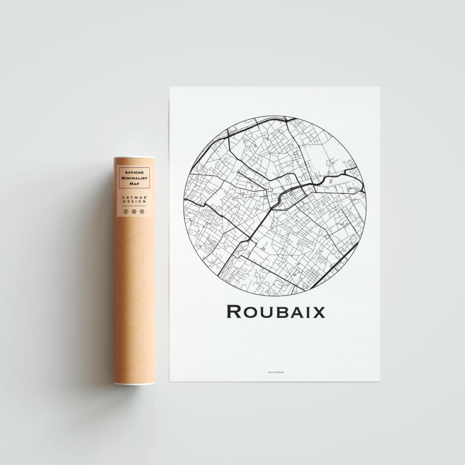 Cette carte est réalisée avec les rues de la ville. Ce sont les rues qui représentent la plus grande quantité de l’espace public dans une ville. Ces cartes modernes illustrent la beauté qui résulte de la construction de la ville. L’affiche Roubaix Minimalist Map illustre la géographie et les motifs de cette ville.